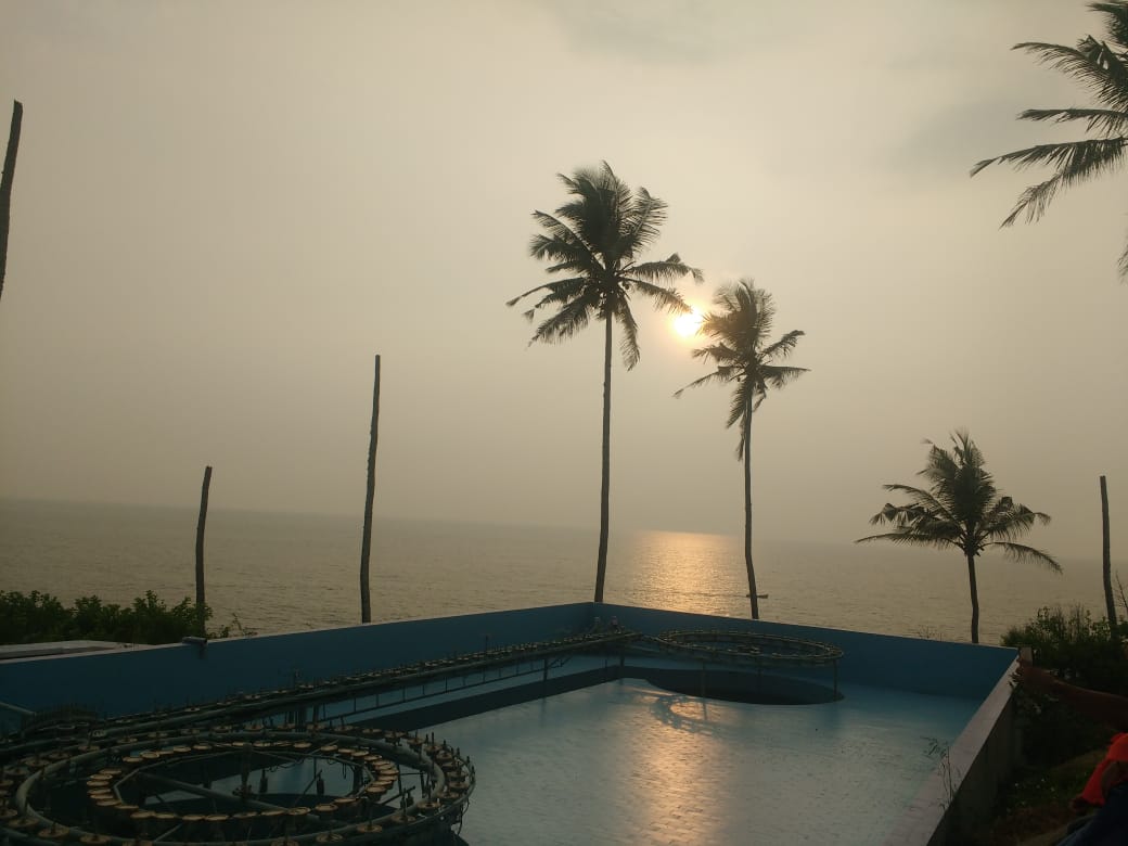 We reached Kovalam beach and walked to our room on the lighthouse beach. Crowd was less there too and our hotel manager upgraded our stay. We had lunch and in the evening we went to the lighthouse. One can see the abundance of coconut trees from the lighthouse top. As acknowledged widely, the view of the sea from the lighthouse is a divine sight and I cannot describe it better in words. Just to top this, Kaniyan decided to run round and round the lighthouse and had a hearty laugh when we caught him. Then I swam for some time in the sea and had the chance of interacting with two localities and swim with them. Then we sat for some time on the beach while observing the surreal surrounding as dusk crept in. Though the crowd was less, it added beauty to the beach in both our destinations. At night, we could hear the splashing of the sea waves from our hotel room. It gave us a distinctive sense of contentment.